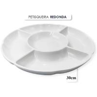 Alugue o produto Petisqueira Prato Melamina 5 Divisórias Branca Petiscos 30cm (Cod 4051) para sua festa, Informações sobre as imagens do produto: - Fazemos de tudo para apresentar imagens muito fiéis ao produto real. Porém, as cores do produto podem variar de acordo com o seu monitor, a iluminação do ambiente em que você está e até mesmo a sua percepção visual. - Além da cor pequenos detalhes e acabamentos podem não ficar evidentes na foto, por isso as imagens são meramente ilustrativas. - Os objetos decorativos que aparecem na foto não acompanham o produto.